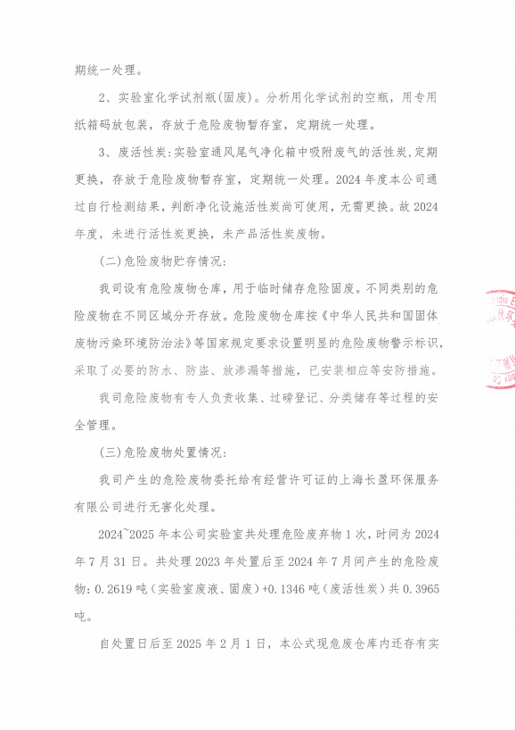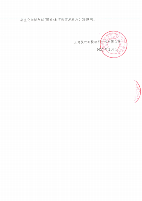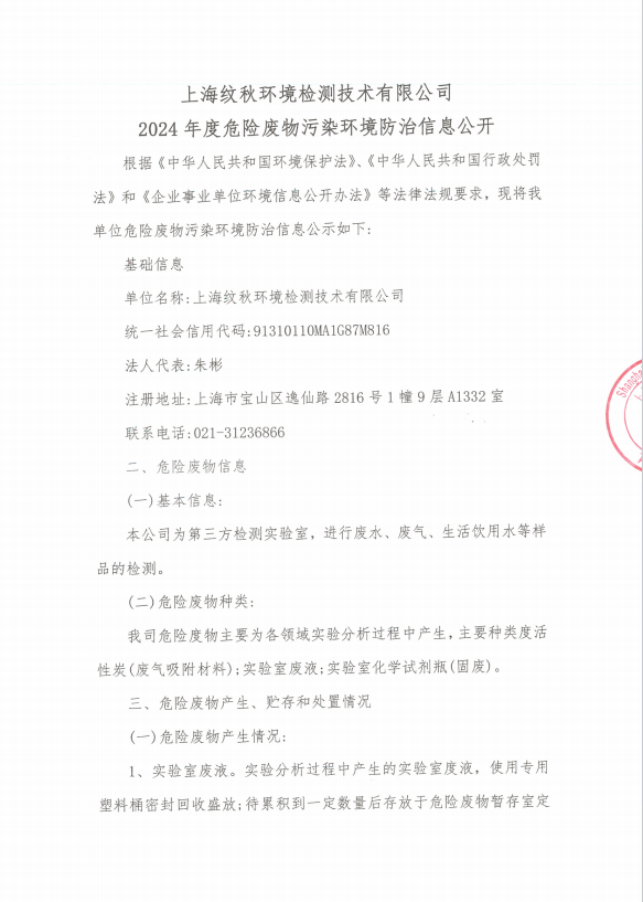 上海纹秋环境检测技术有限公司2024年度危险废物污染环境防治信息公开